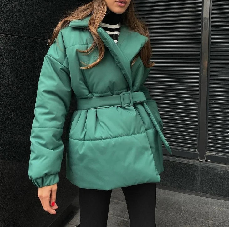 Autumn Women's Clothes with Thick Collars and Waist Cinched Cotton Jackets Look Slim Solid Color Cotton Jackets for Women
