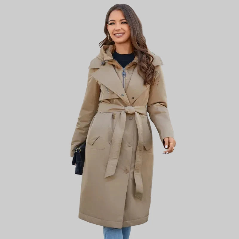 De lange pasvorm biedt extra bescherming tegen wind en kou, terwijl het slanke en stijlvolle design zorgt voor een elegante uitstraling. Dankzij de dunne maar isolerende voering is deze tussenseizoen parka voor dames zowel praktisch als modieus.